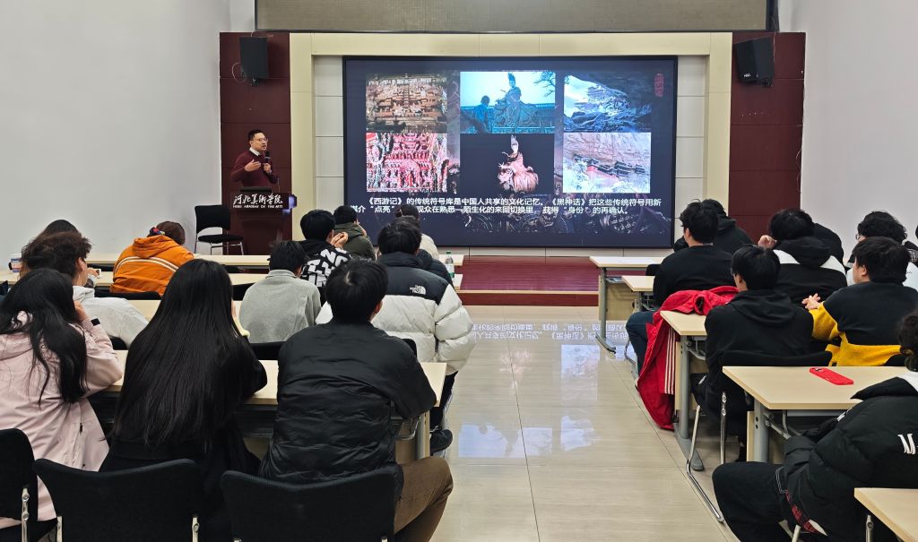 10月21日上午,动画数字艺术学院在14号教学楼5楼报告厅举办《黑神话悟空》如何“再造”传统 —— 从经典文化到黑暗幻想主题学术讲座。本次讲座特邀广西艺术学院李英峰教授担任主讲嘉宾,动漫设计系王坤主任主持活动,动漫设计系20余名教师及90余名学生共同参加。