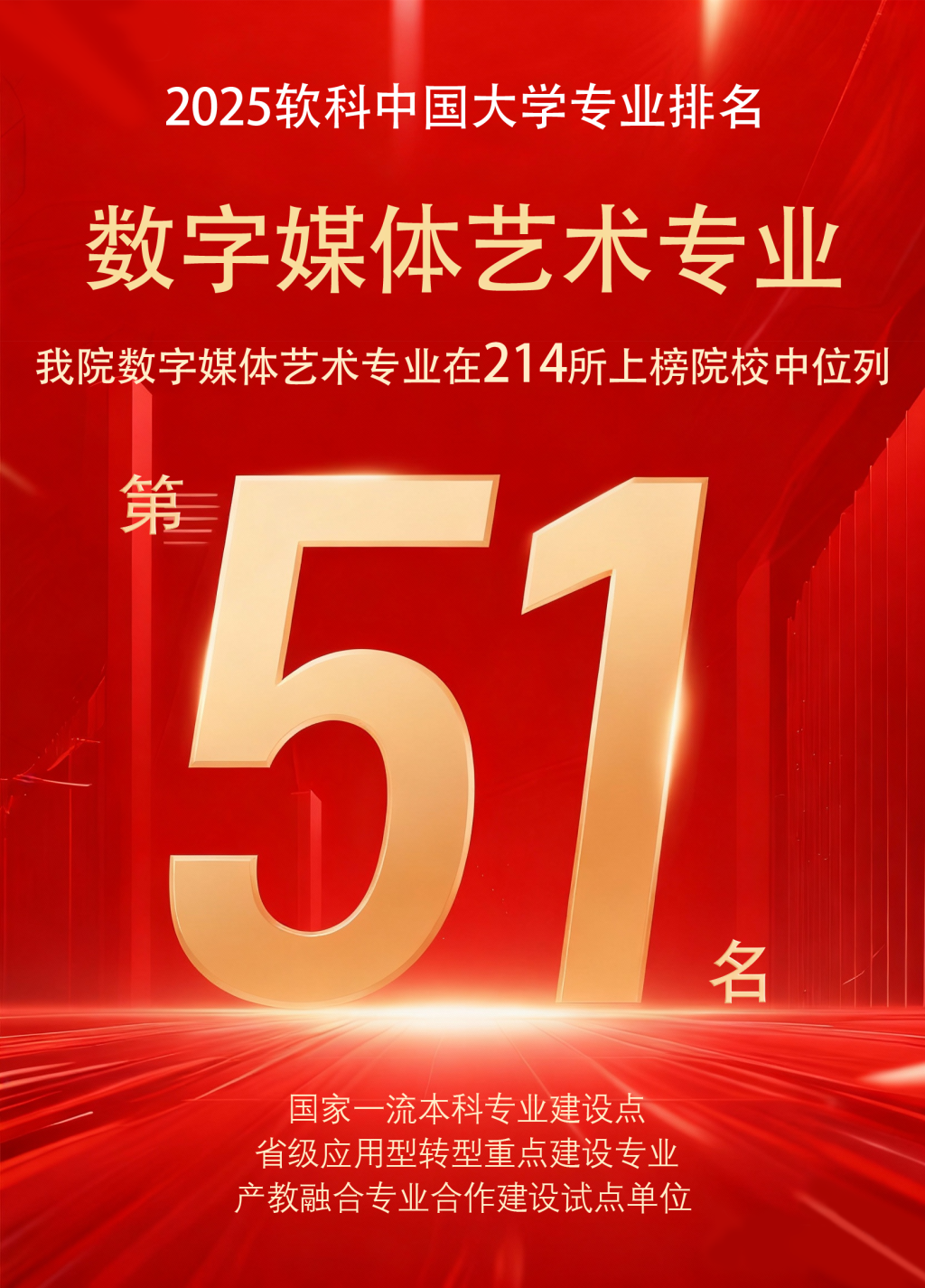 此次排名不仅是学院多年学科建设成果的集中体现,更标志着我们站上了迈向更高水平的新起点。未来,我院将聚焦国家文化发展战略与数字创意产业需求,推动学科建设与人工智能等前沿技术深度融合,积极培育“艺术+人工智能”等新兴交叉学科增长点,为培养面向未来的应用型人才提供坚实支撑。