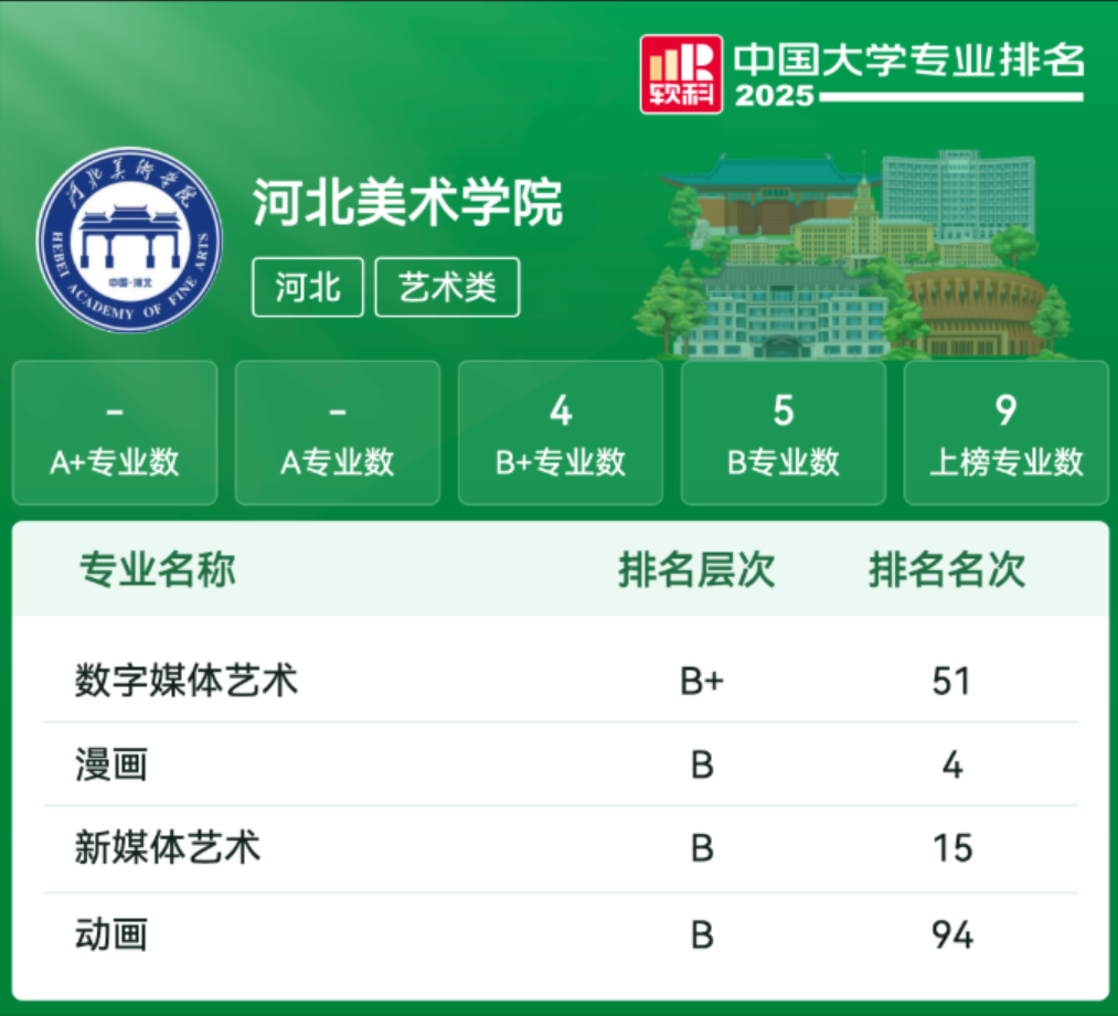 河北美术学院动画数字艺术学院四大专业榜上有名!